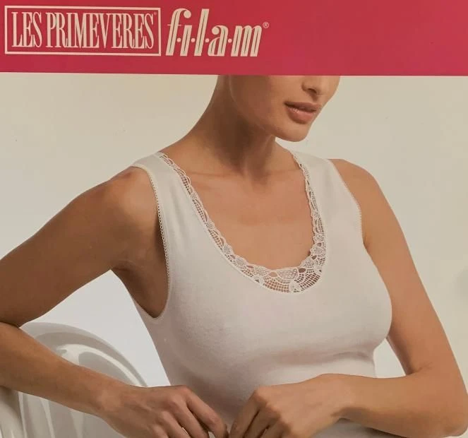 Canottiera Donna spalla larga 100% COTONE Filam 7035 con pizzo macrame’ sullo scollo