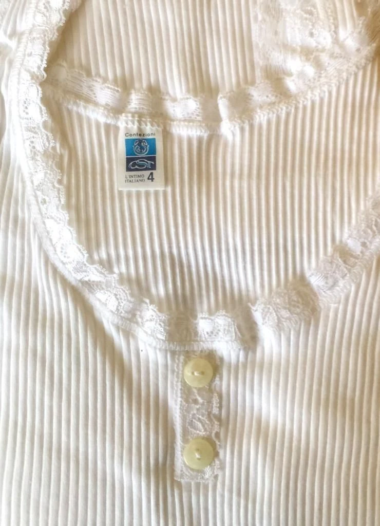 Canottiera Donna spalla larga cotone 100% Ciesseti 3013 Fine Serie maglia a costina e pizzo elasticizzato sulla scollatura